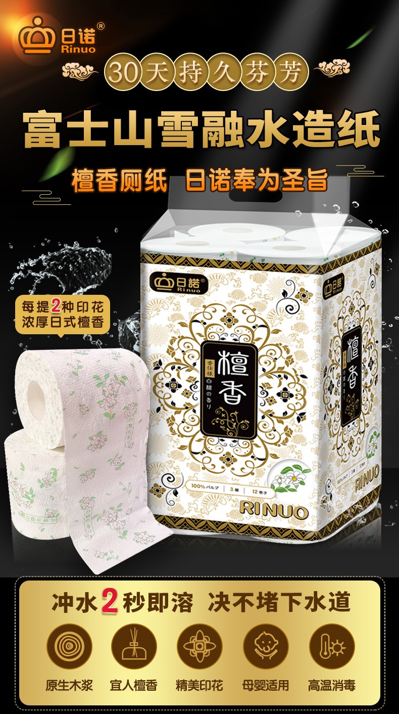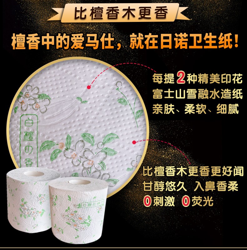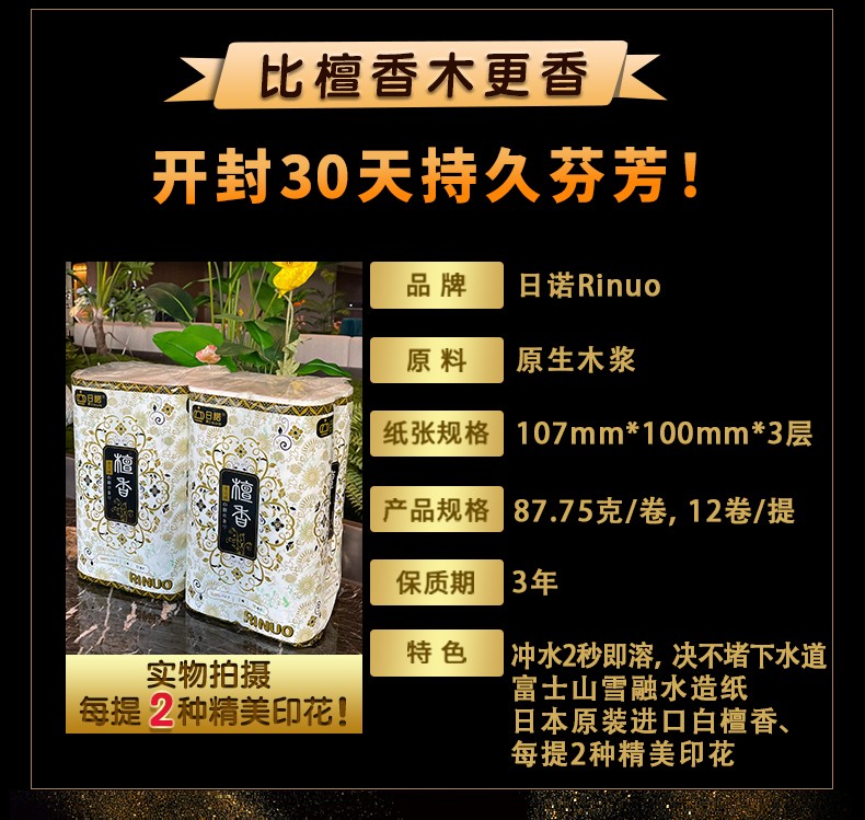 日諾日本進口檀香印花衛(wèi)生紙卷筒紙可溶水速溶廁紙有芯卷紙巾1提