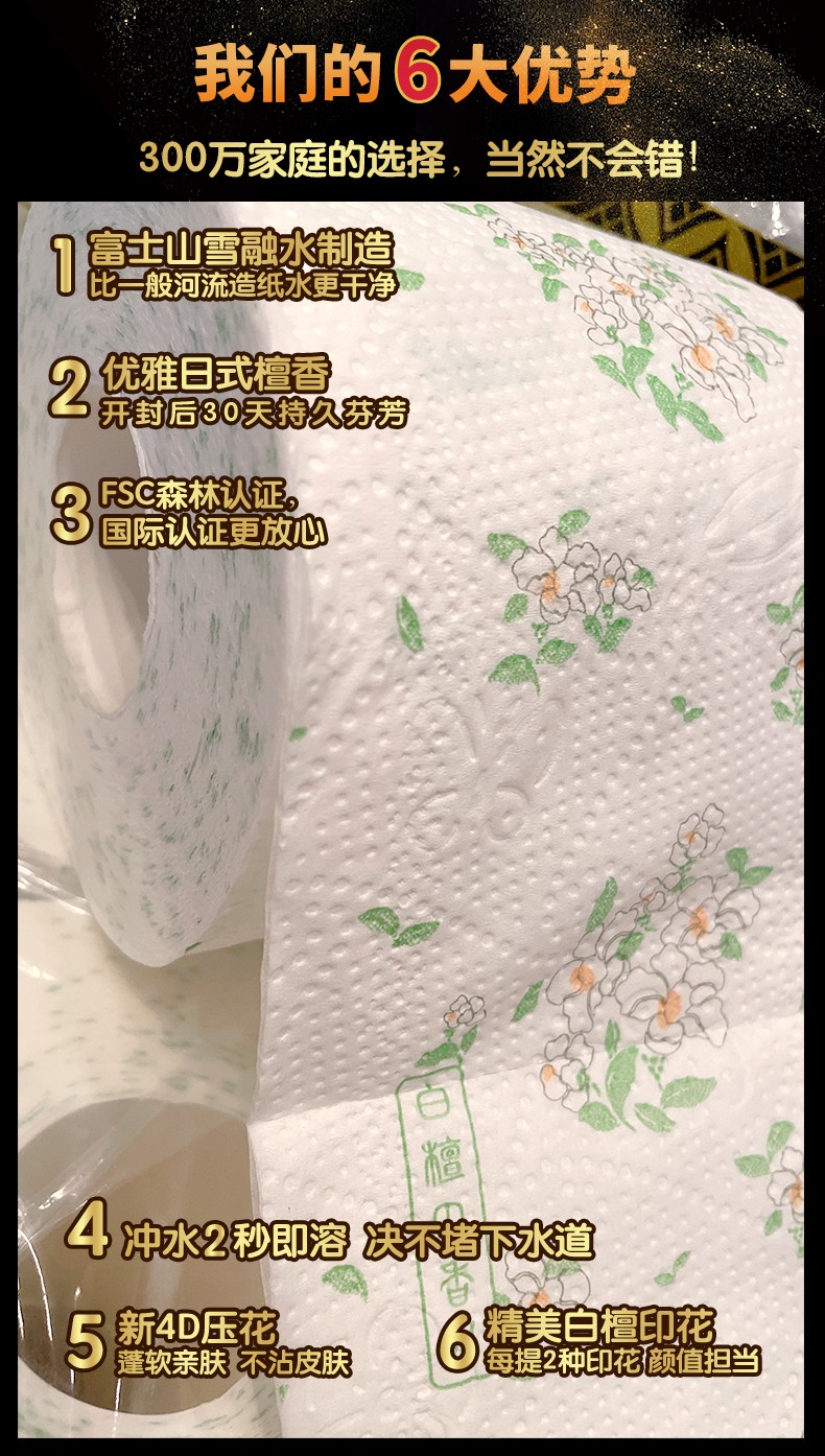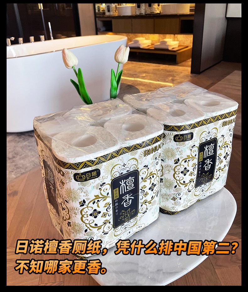 采購(gòu):日諾日本進(jìn)口檀香印花衛(wèi)生紙卷筒紙可溶水速溶廁紙有芯卷紙巾8提
